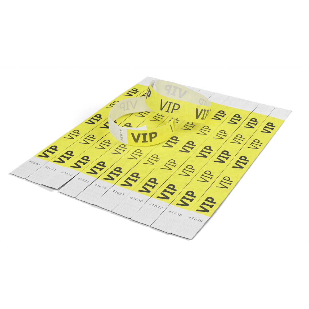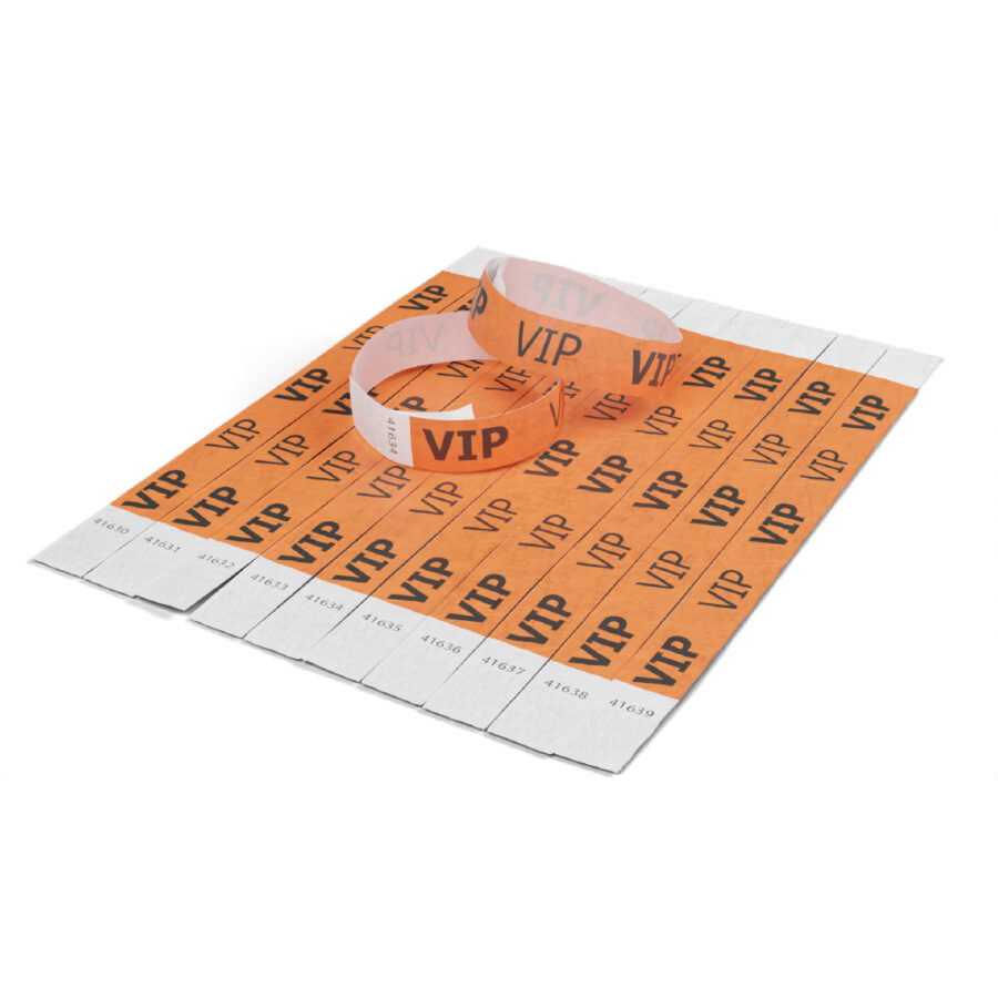 Tyvek V.I.P. wristbands are available in 4 different colours. The size of the wristband is 250 mm x 19 mm.